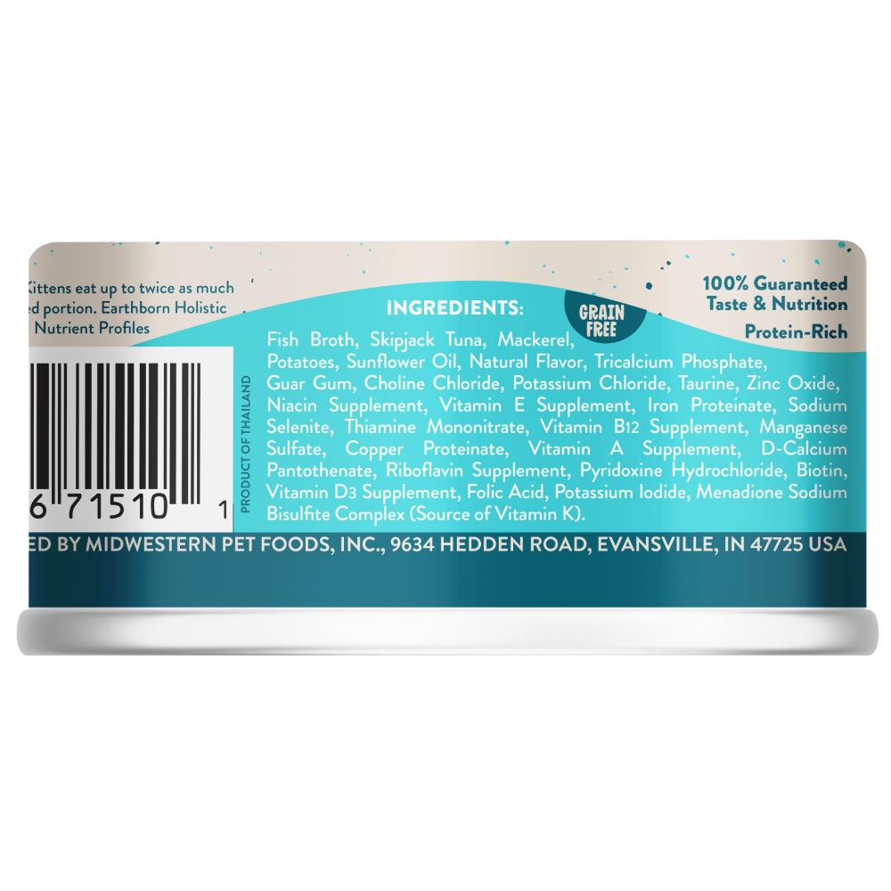 Monterey Medley Skipjack Tuna and Mackerel Dinner in Gravy will help keep your cat in top physical condition and health. This grain- and gluten-free wet cat food dinner is packed with high-quality proteins, such as skipjack tuna and mackerel, and hearty chunks of potatoes, to supply exceptional levels of vitamins and minerals into this top-quality wet food. The skipjack tuna and mackerel are flaked straight from the bone and are wild-caught and dolphin-safe. Monterey Medley is the perfect canned food diet for your cat or kitten.