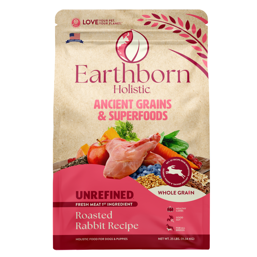 Unrefined Roasted Rabbit Recipe dog food with ancient grains and superfoods is packed with a variety of nutrient-rich superfoods like pumpkin, butternut squash, salmon meal, and a variety of fruits and other veggies. Paired with ancient grains like quinoa and oatmeal and enriched with Taurine for heart health and added probiotics, this grain-inclusive dog food recipe is crafted for dogs and puppies alike who are a little unrefined themselves.