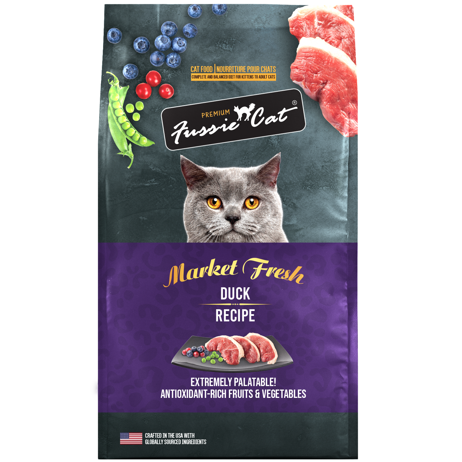 Duck, duck meal, peas, pea flour, sunflower oil, natural flavors, choline chloride, salmon oil, salt, vitamins (niacin, vitamin E supplement, vitamin A supplement, thiamine mononitrate, pantothenic acid, riboflavin, pyridoxine hydrochloride, vitamin D3 supplement, vitamin B12 supplement, folic acid, biotin), alfalfa meal, fructooligosaccharides, taurine, minerals (zinc proteinate, iron proteinate, potassium chloride, copper proteinate, manganese proteinate, sodium selenite, calcium iodate), mixed tocopherols (preservative), dried cranberries, dried blueberries, dried kelp, rosemary extract