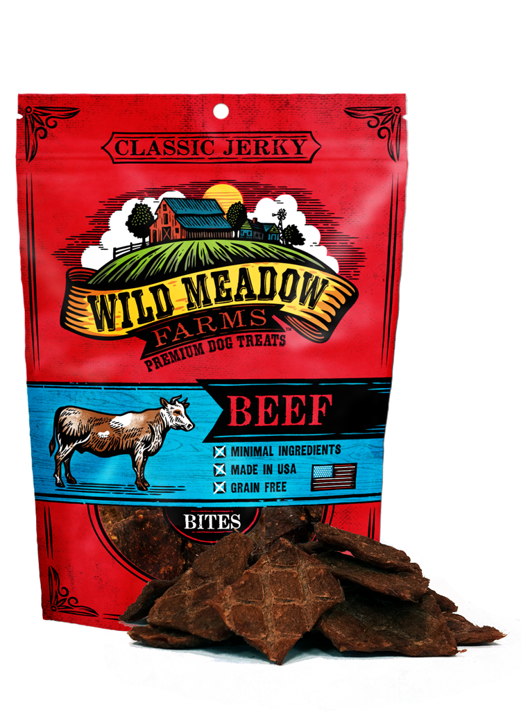 Our all-USA, Classic Jerky Beef treats are made with high quality, minimal ingredients. They are the perfect high value treat for your dog, if your dog gets excited at the prospect of a delicious meat snack. If so, our Classic Jerky Bites are the perfect treat.