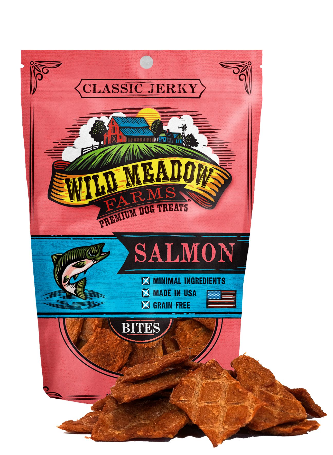 Our all-USA, Classic Jerky Salmon treats are made with high quality, minimal ingredients. They are the perfect high value treat for your dog, if your dog gets excited at the prospect of a delicious meat snack. If so, our Classic Jerky Bites are the perfect treat.