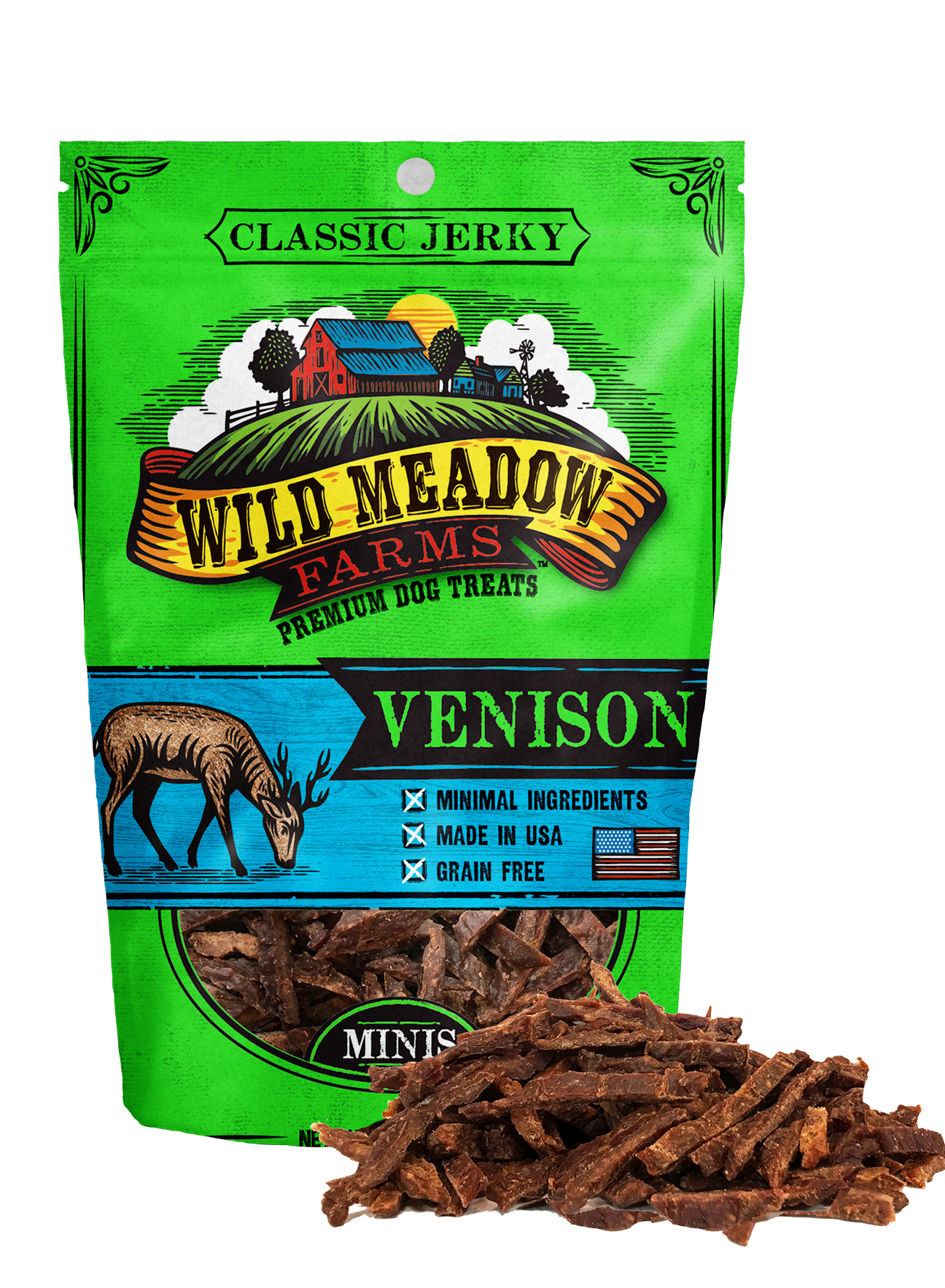 Our Classic Jerky Venison treats are made with high quality, minimal ingredients. These mini jerky treats are the perfect high value treat that is ideal for training. They are small enough to not fill up your dog while being so delicious that they keep their attention.